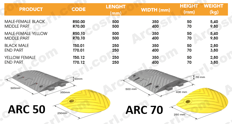 Due versioni in base all’altezza: limite di velocità 10 Km/h oppure 20 Km/h. Superficie antiscivolo per una maggiore aderenza in caso di intemperie.