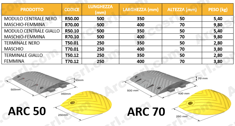 Due versioni in base all’altezza: limite di velocità 10 Km/h oppure 20 Km/h. Superficie antiscivolo per una maggiore aderenza in caso di intemperie.